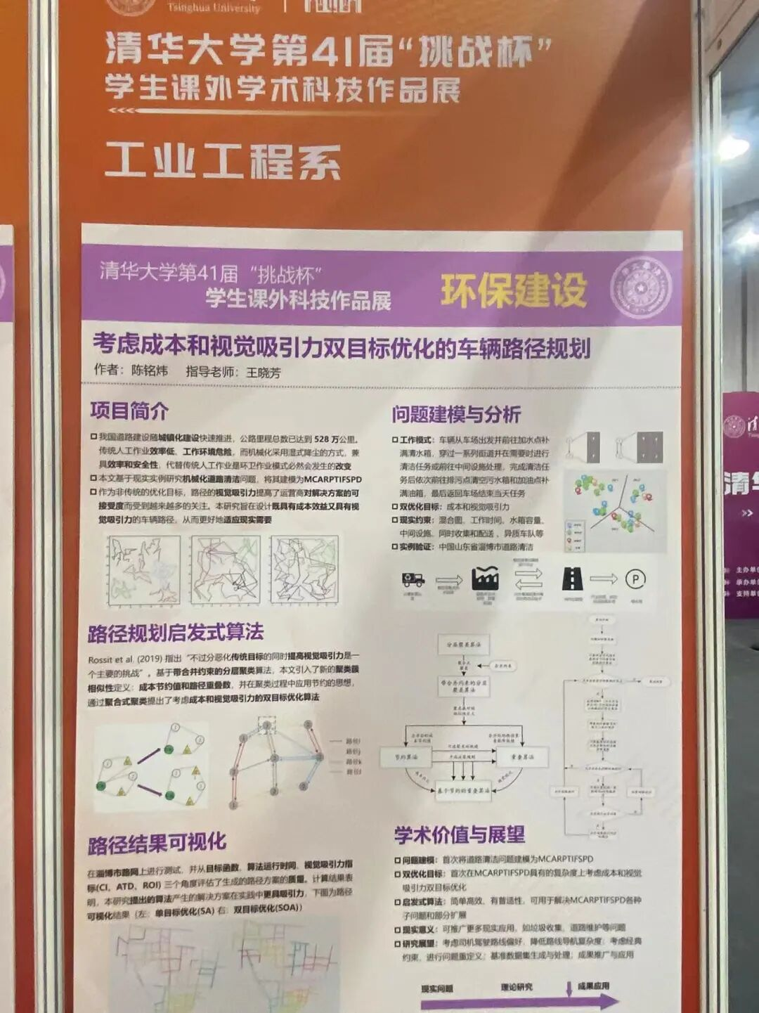 此后,陈铭炜陆续独立参与并主持 SRT、挑战杯等项目,并在相关赛事中获得奖项;同时入选清华大学学术研究推进计划 A 级项目,作为项目负责人稳步推进研究工作。项目成果在清华大学第二届“追光”科创青年论坛中作报告,并获评优秀报告奖。这些经历促使他逐步将课堂中学到的运筹优化、系统建模与人因分析方法,应用于真实问题的定义、求解与验证之中。