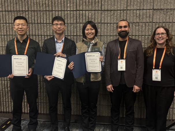 祁炜(左一)、何龙(左二)、毛瑞九(左三)和奖励委员会成员Ali Fattahi(右二)、 Emily Griffin(右一)合照
